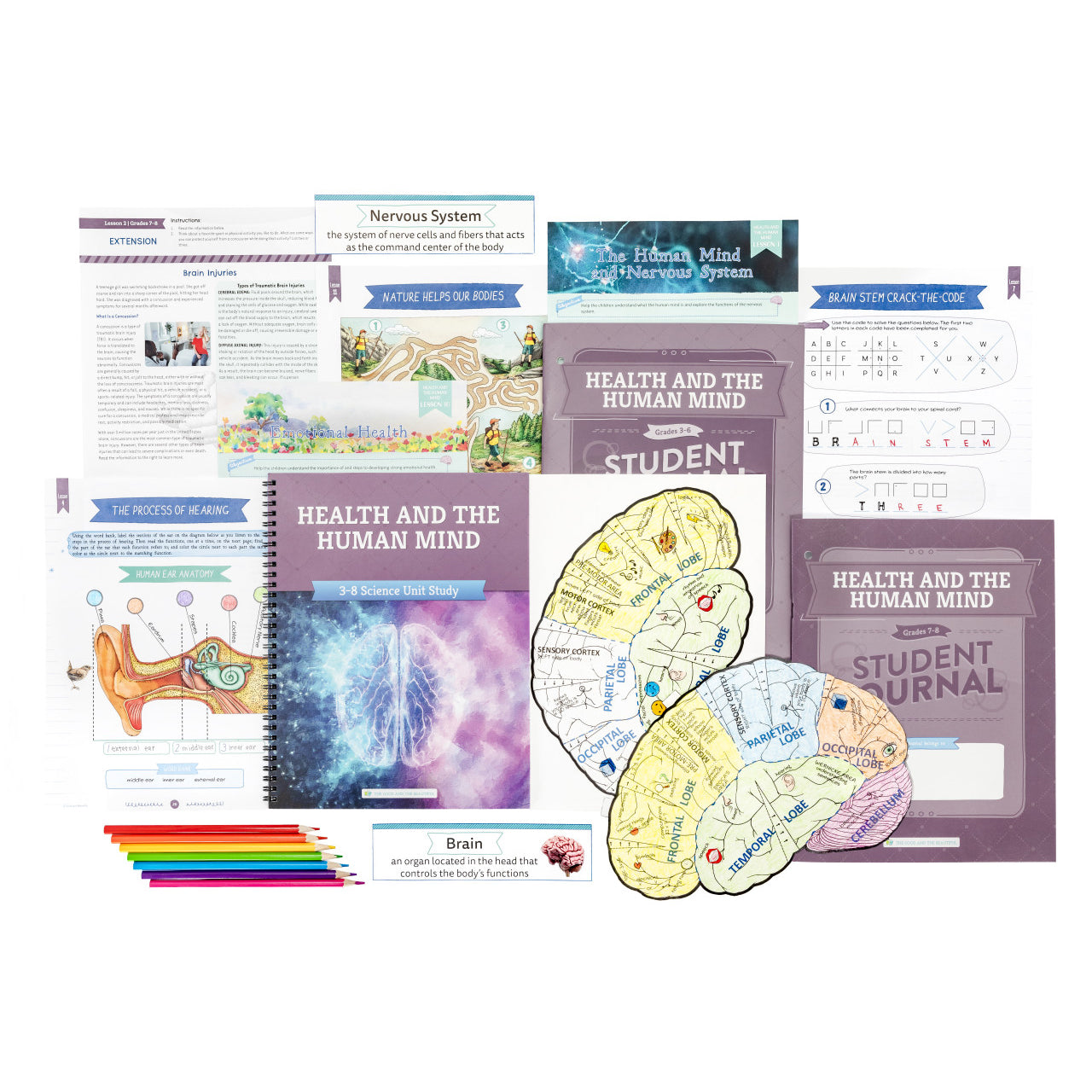 Health and the Human Mind: 3-8 Science Unit Study is a comprehensive educational program that explores the fascinating connection between mental health, emotional well-being, and physical health. This unit study introduces students to basic neuroscience, psychology, and mental health concepts in an age-appropriate manner while emphasizing character development and positive mental health practices.